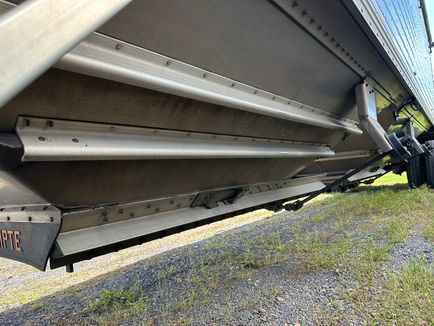 Used 2023 Timpte 43'x102"x102", Aluminum coupler & subframe, Black side wall panels, Stainless steel front nose, front corners, & rear panels. 3 rows of 5 bullet lights. 7 bullet lights on rear header. Quick connect & brackets for portable vibrator. Thunder 7000XR electric tarp system w/remote, 8 alum, 285/75R24.5 tires. $47,000 sitting in Jackson, MS